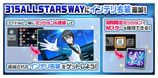 アイドルと一緒にミッションを達成して追加されたインテリ衣装をゲットしよう!※詳細はアプリ内をご確認ください。