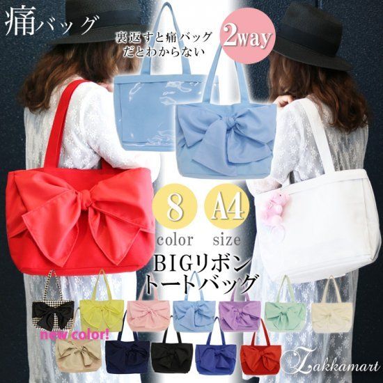裏返すと痛バッグ感の無い、大人可愛い痛バッグが登場!ザッカマート楽天市場にて現在予約受付中。価格は3,900円(税抜き)です。リボンが可愛いだけじゃない、機能性も◎なバッグです。