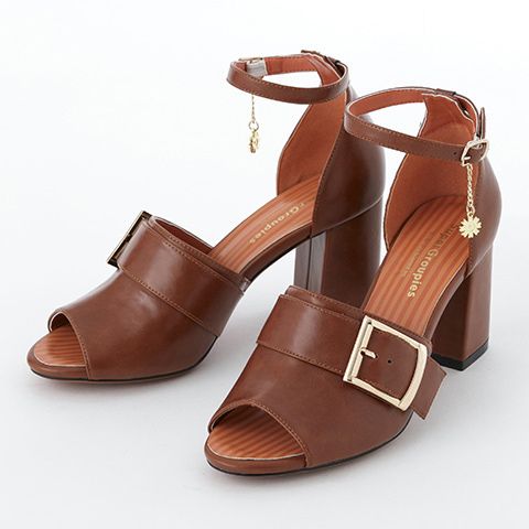 秋組をイメージしたブラウンのストラップサンダル。ゴールドのスクエア型バックルが全体の印象を引き締めてくれます。