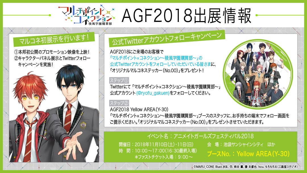 また、2018年11月10日(土)・11日(日)に東京・池袋にて開催される国内最大規模の乙女向けイベント「アニメイトガールズフェスティバル2018(AGF2018)」の出展も決定!