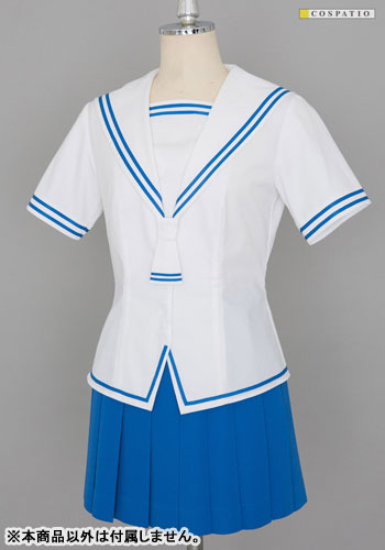 白と青の配色が夏らしい爽やかさを演出する女子のブラウス、由希や夾たちが着ている男子のシャツ、長さ違いの3種が展開される女子の青スカートがラインナップ。