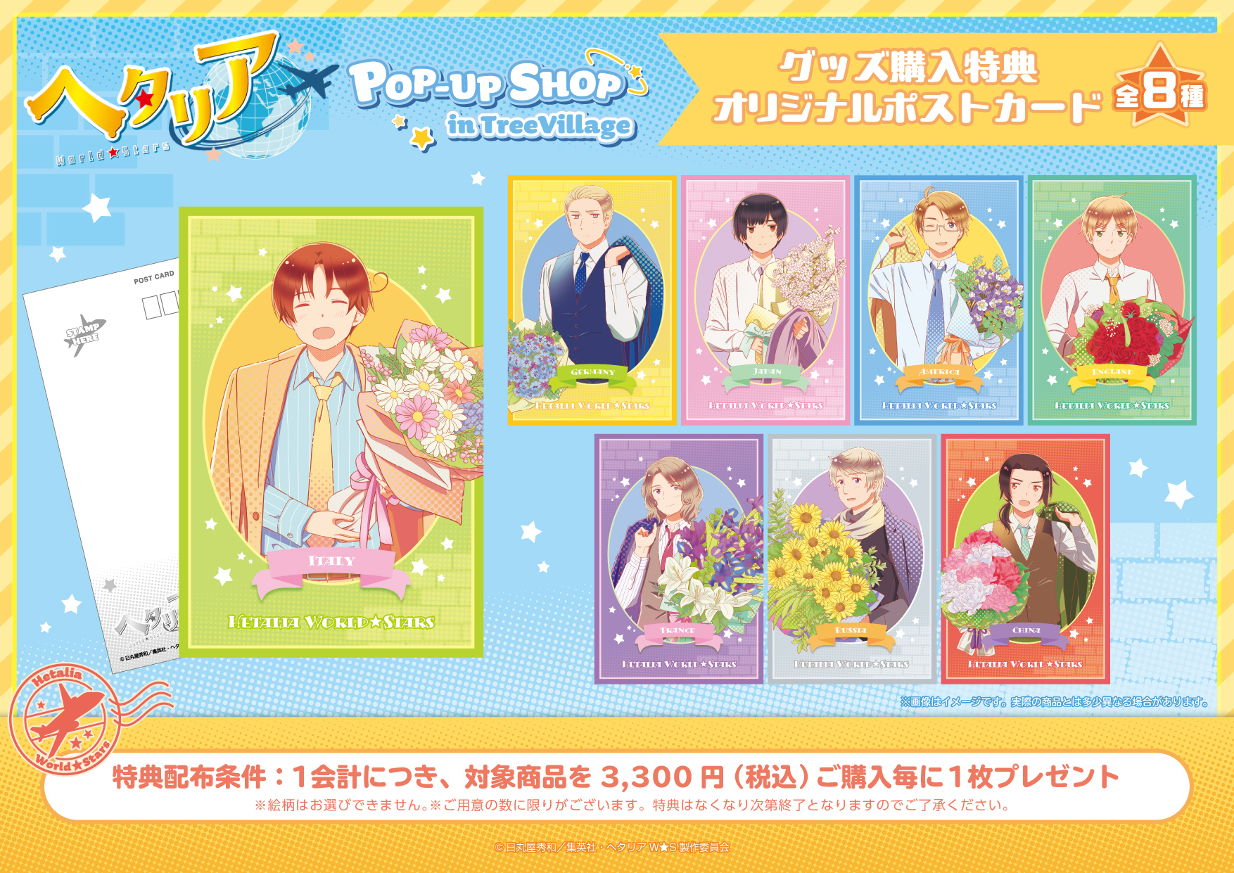 人気アニメ『ヘタリア World★Stars』のポップアップショップ「POP-UP SHOP in TreeVillage」が東京・大阪・博多の全国3都市で開催決定!