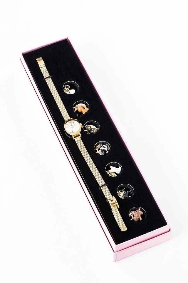 時計には作中のキャラクターの動物姿のチャームが付属。