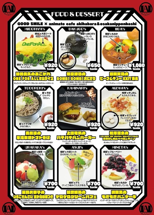 『僕のヒーローアカデミア』そばにおにぎりとアニメイトカフェのメニュー公開!中にはちょっと怖いメニューも…