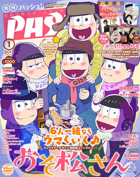 寒い冬も6つ子たちと一緒に!PASH!1月号の表紙に『おそ松さん』が登場!個性豊かな冬の装い
