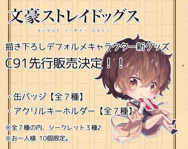 先日最終回を迎えた『文豪ストレイドッグス』の描き下ろしデフォルメグッズがコミックマーケット91(C91)にて先行発売決定!